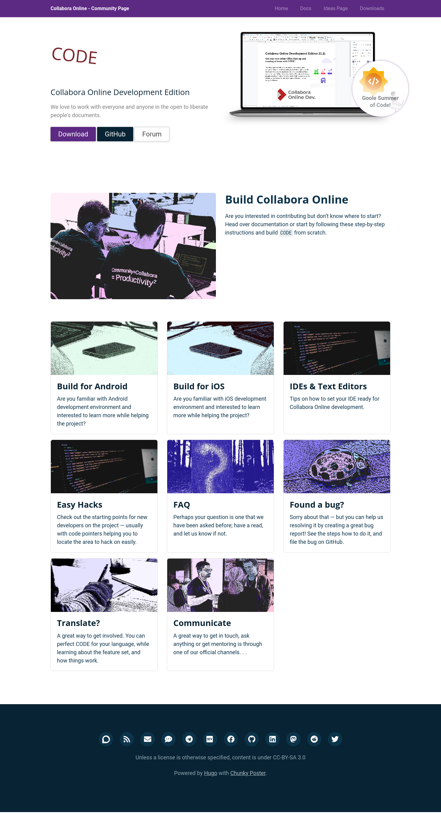 Designed and build CODE (Collabora Online Dev.) community website using Hugo framework: GitHub commits